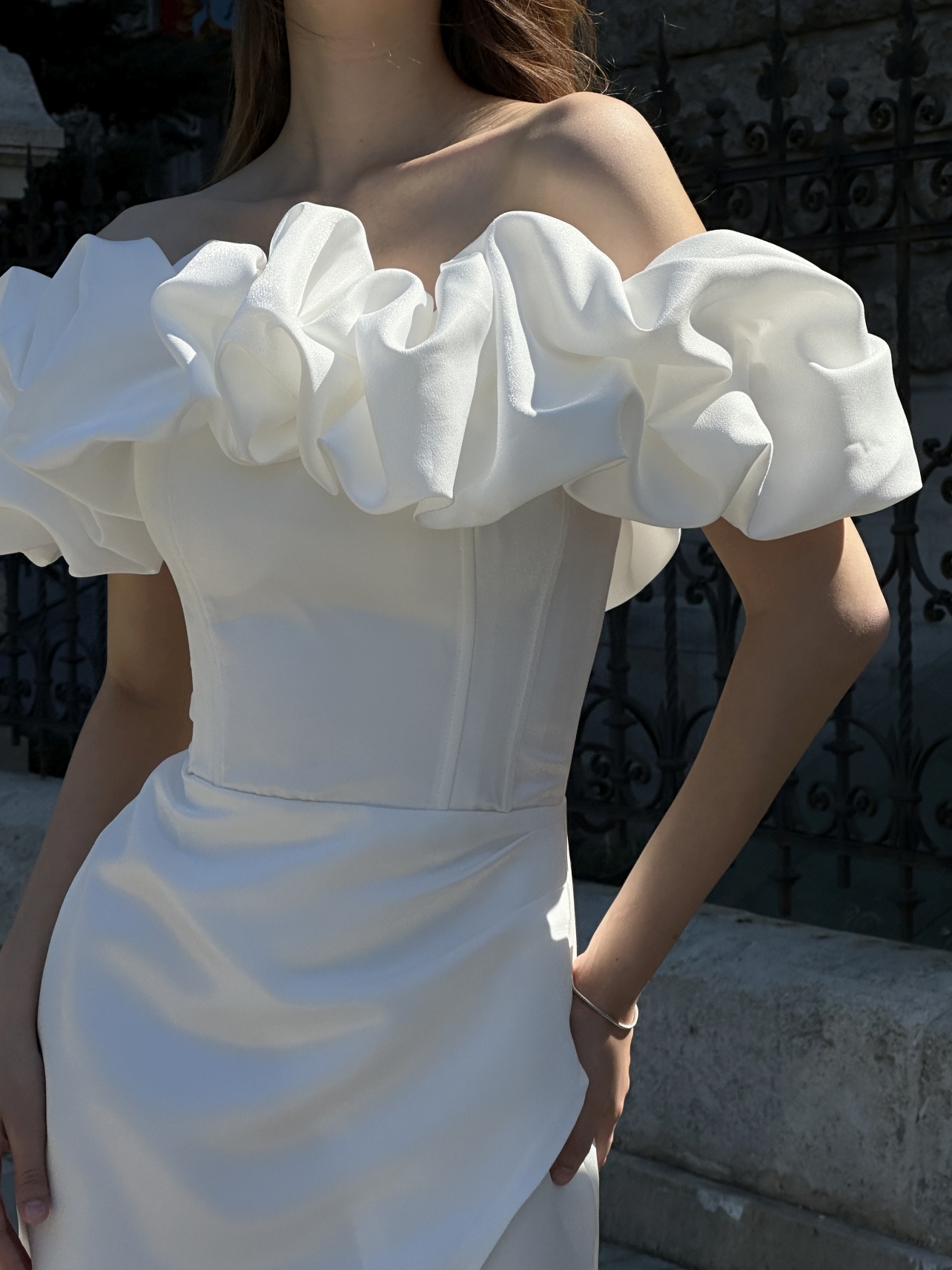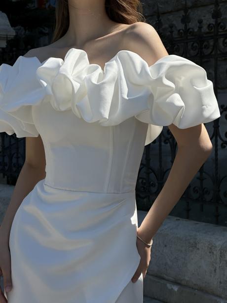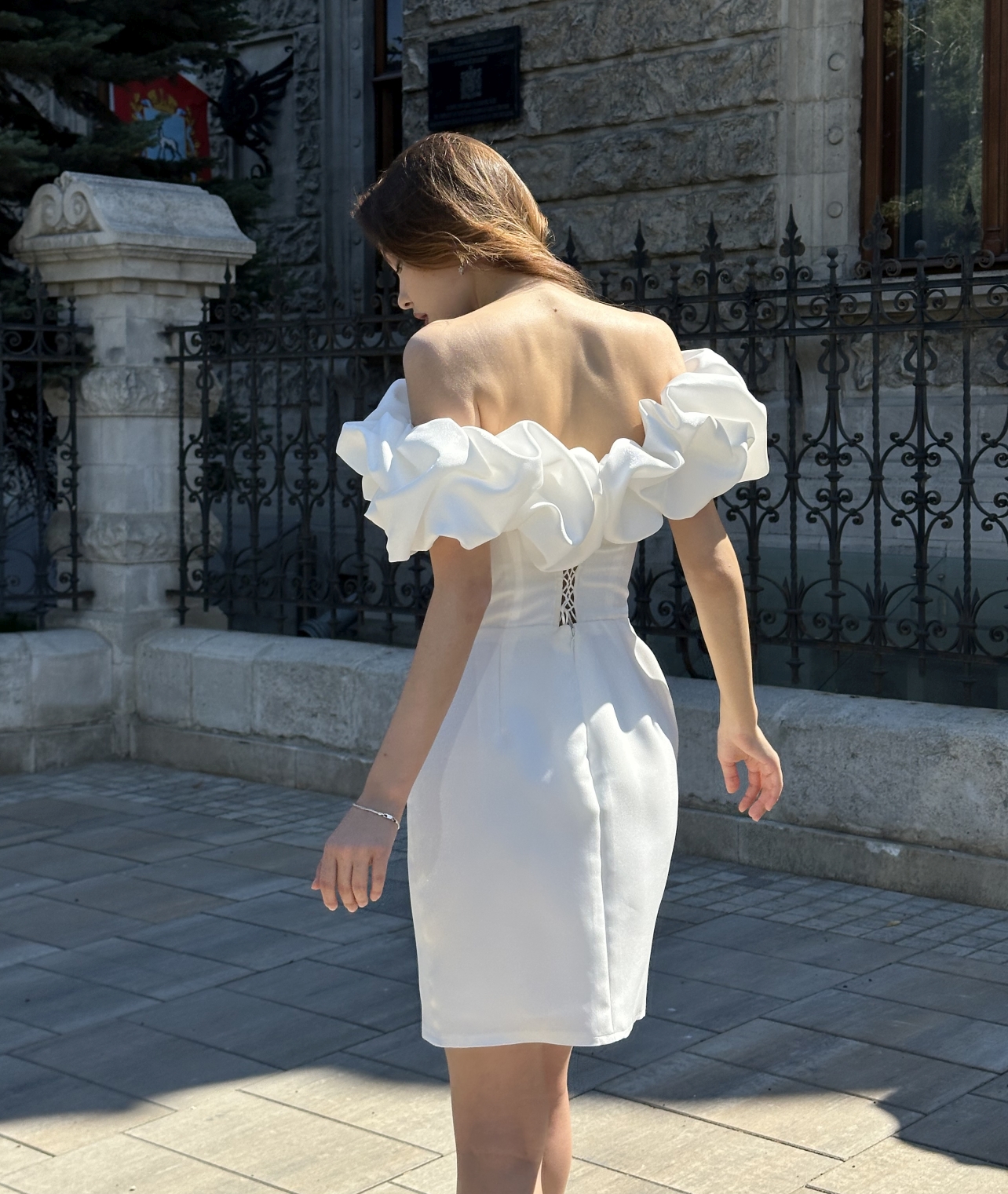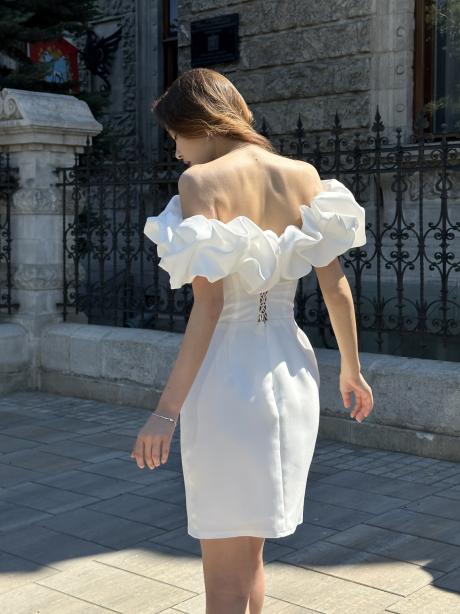 Короткое коктейльное платье с воланом. Корсет и облегающая бедра юбка придают изящность фигуре девушки. Волан сьемный. Размеры от 48 отшиваем по индивидуальным меркам, что обеспечивает идеальную посадку по фигуре.