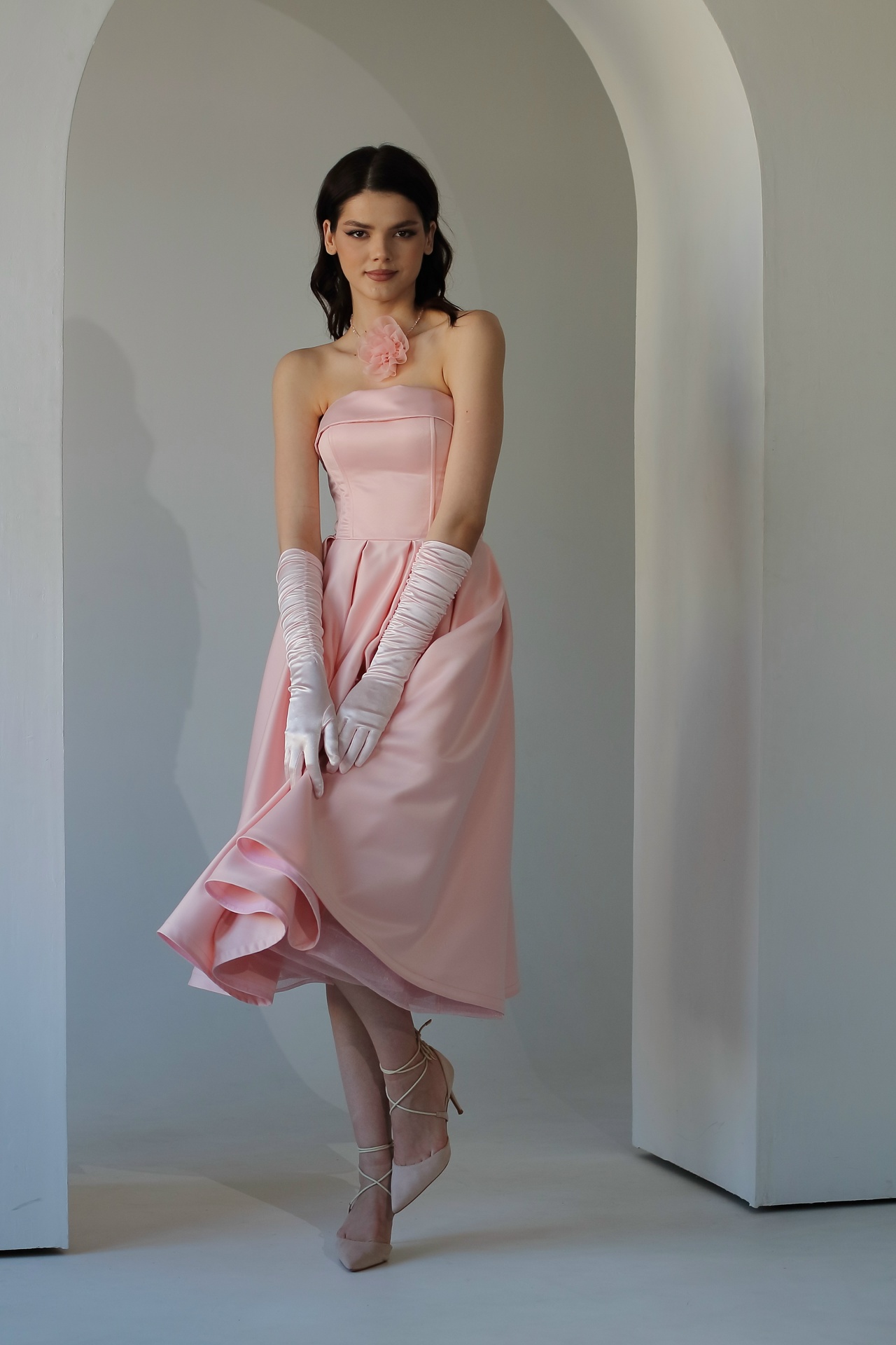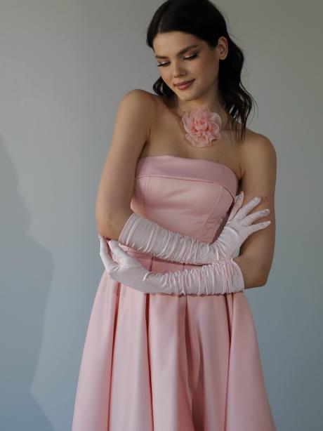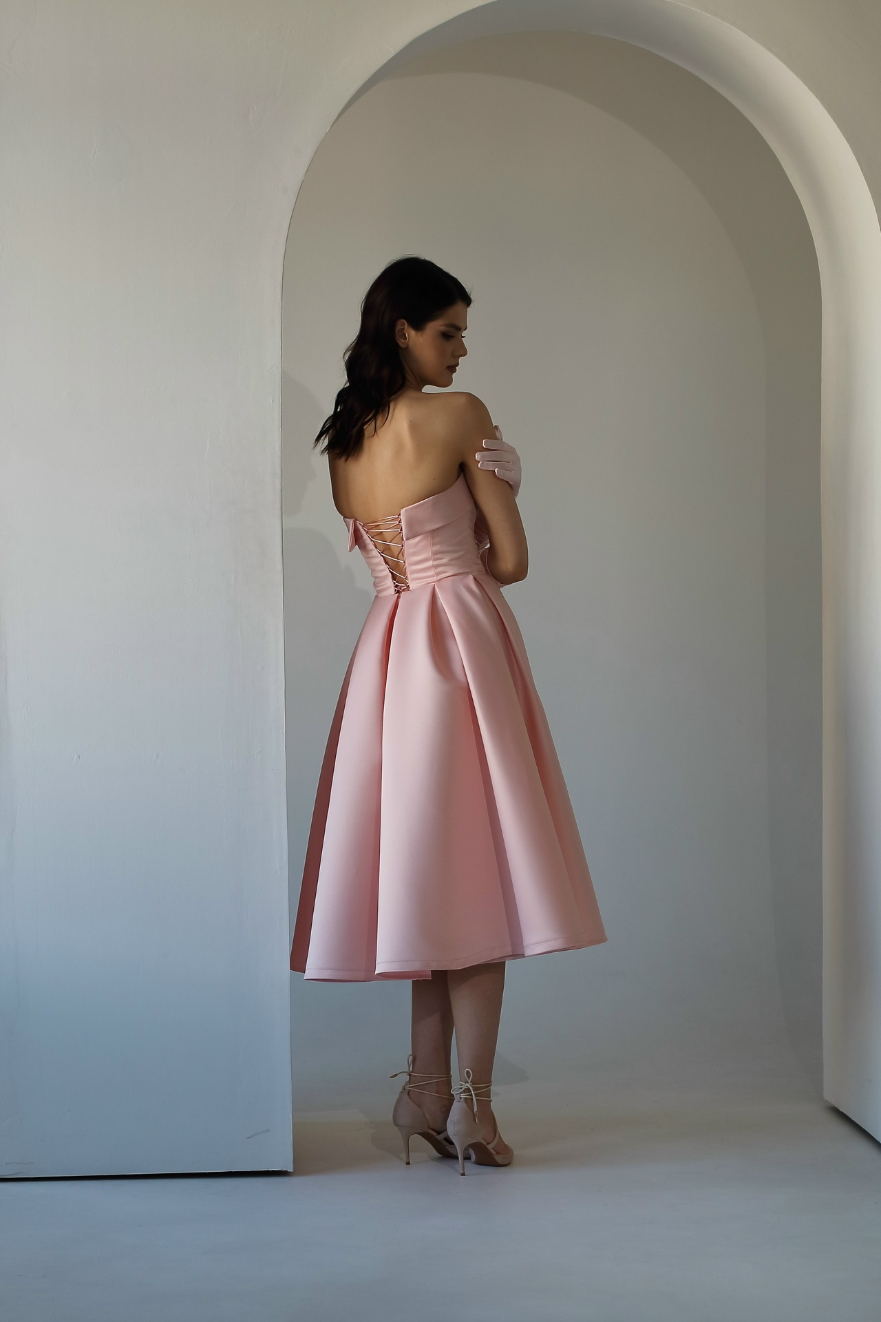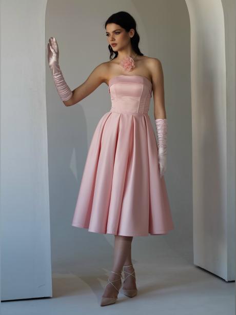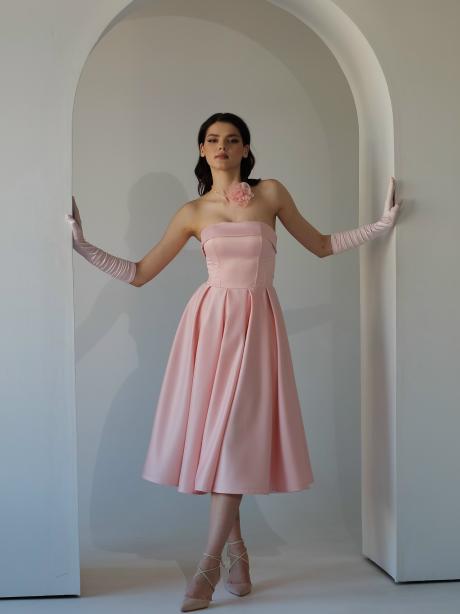 Вечернее корсетное платье Sher нежно-розового цвета, в длине миди. Платье на выпускной.
