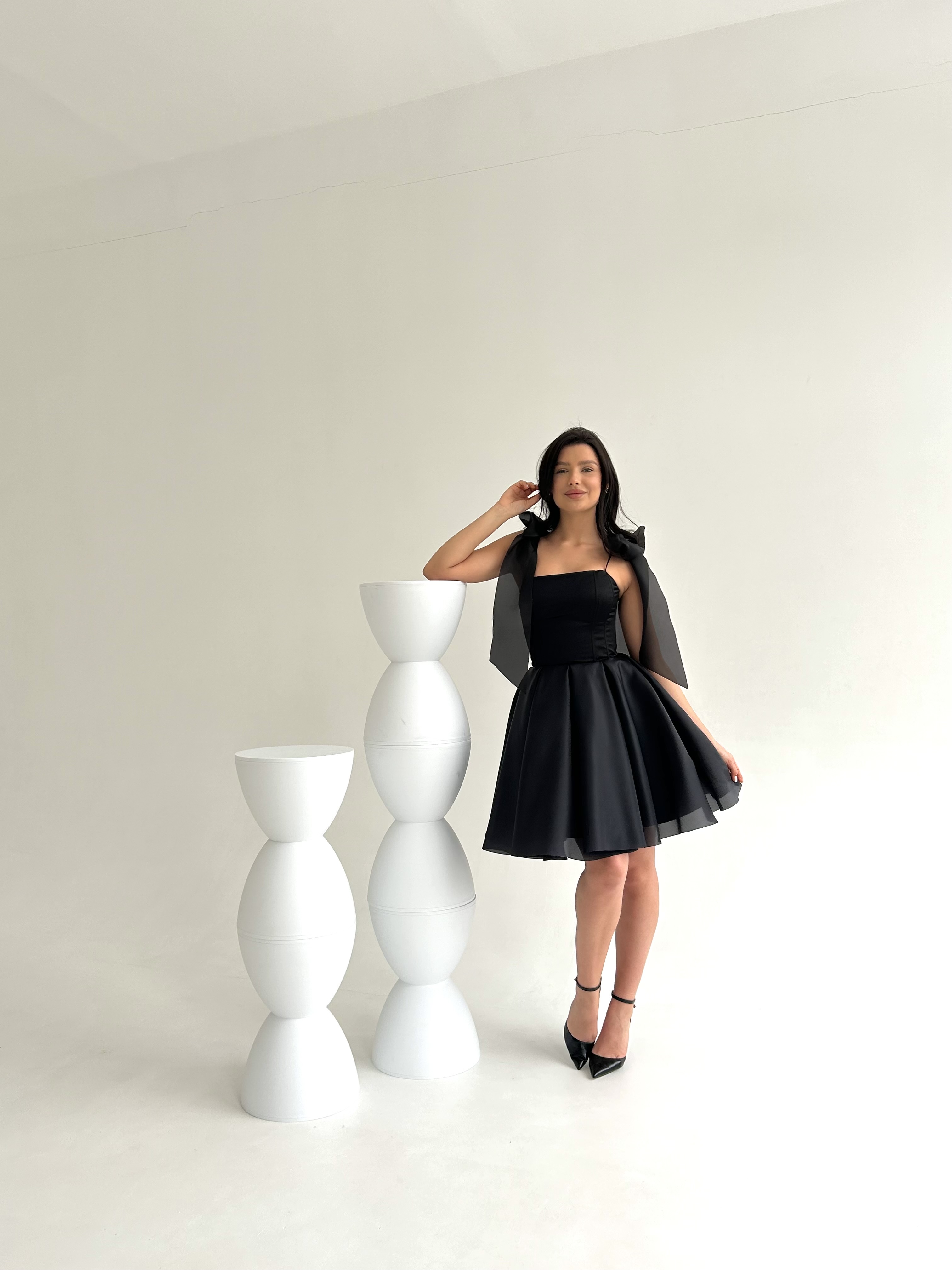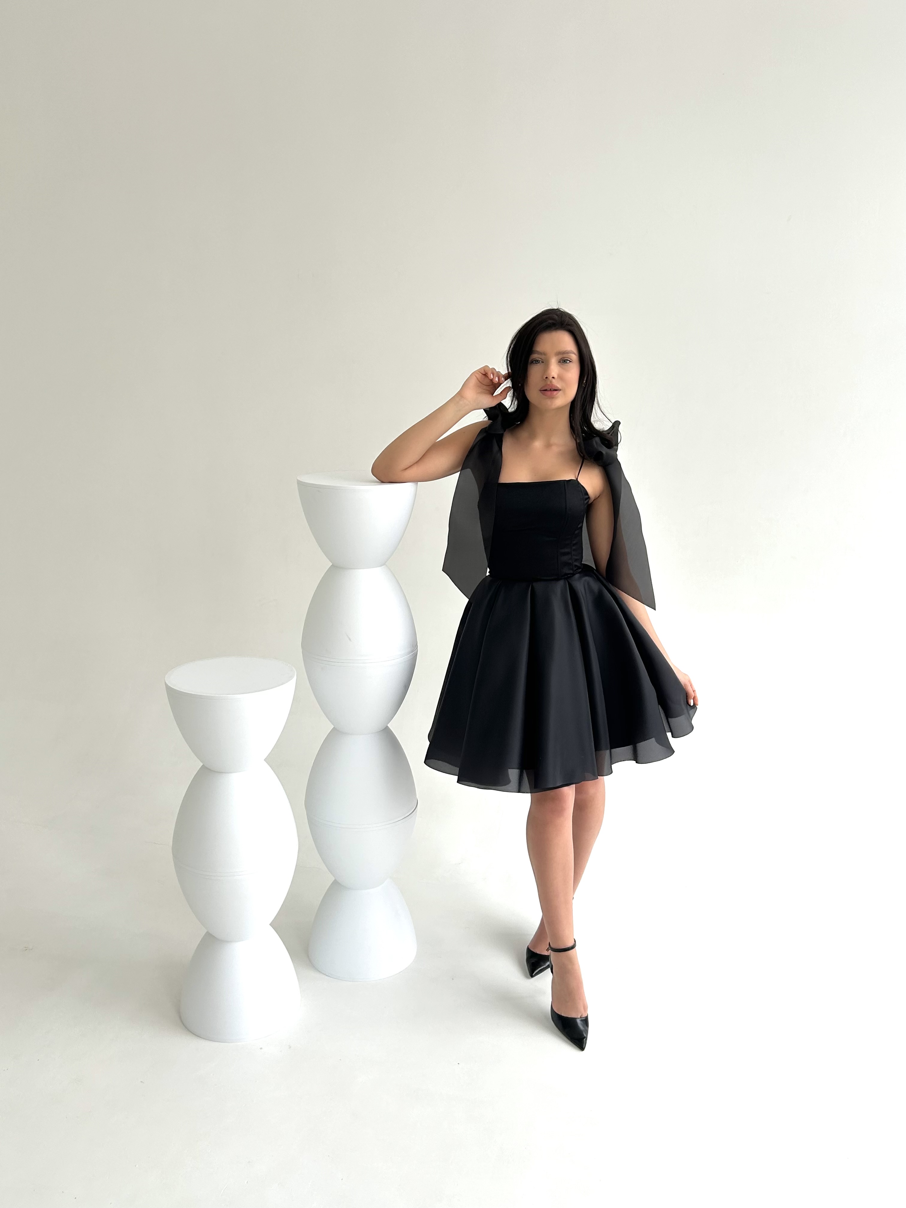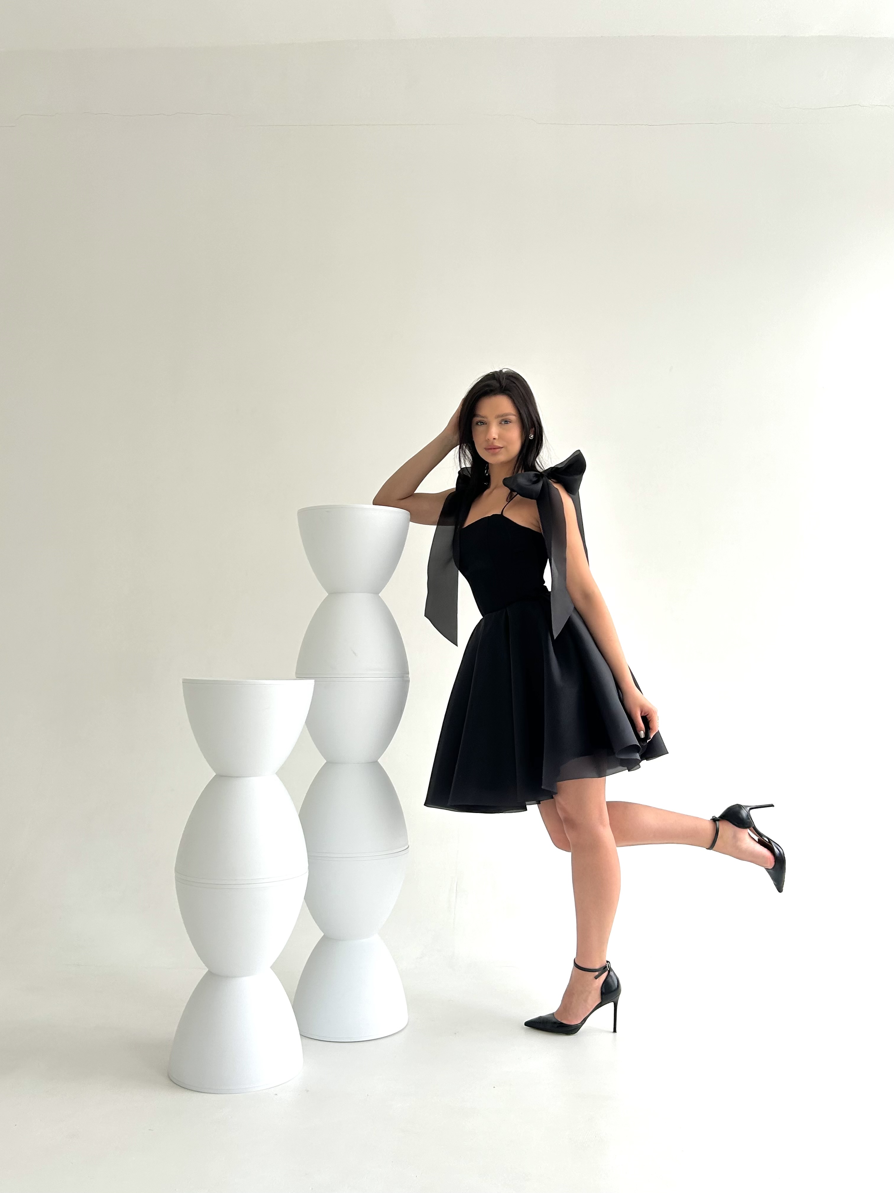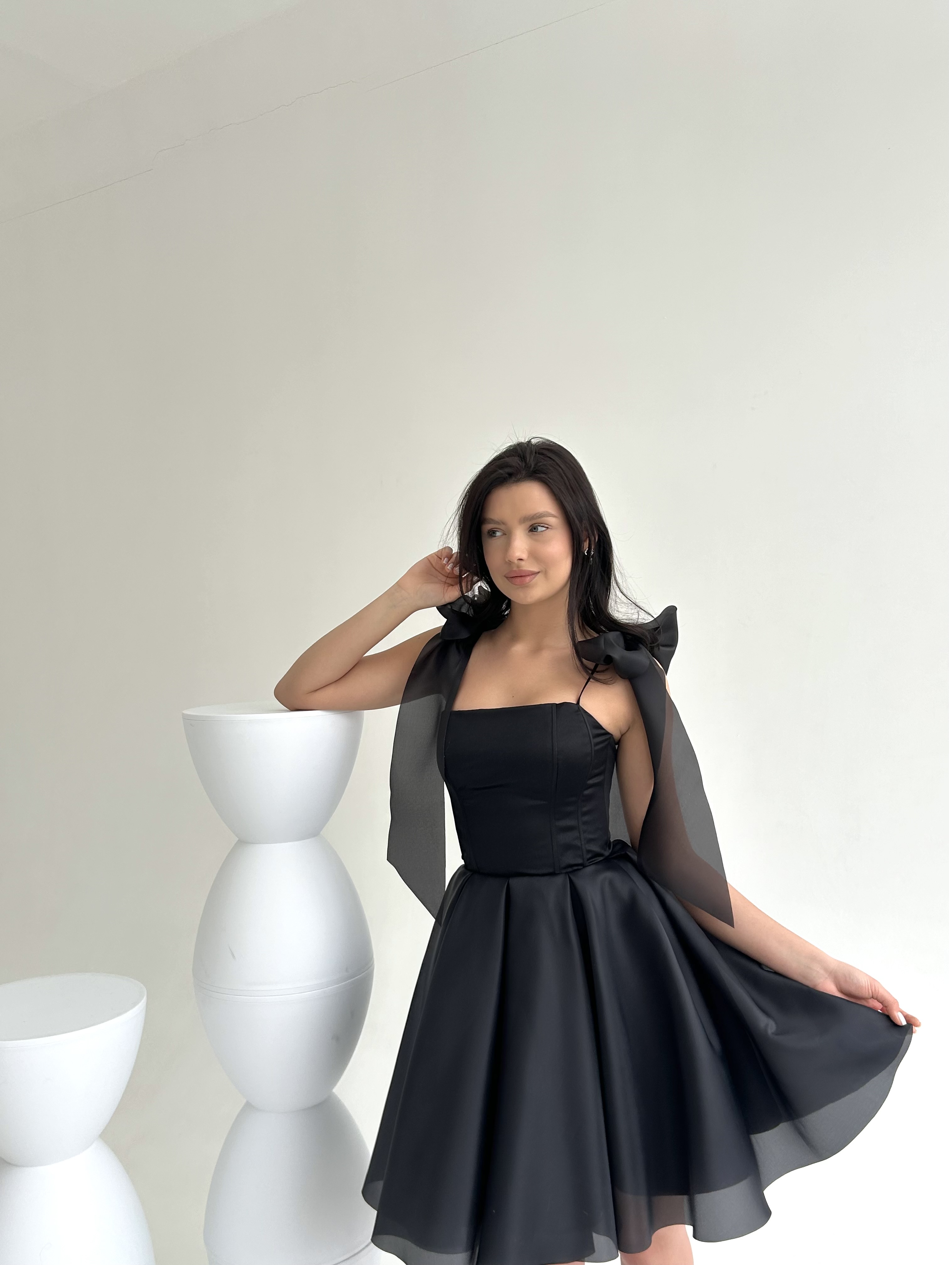 Корсетное платье с бретелями, со съёмными бантами, пышной юбкой в черном цвете.