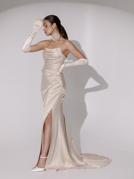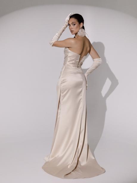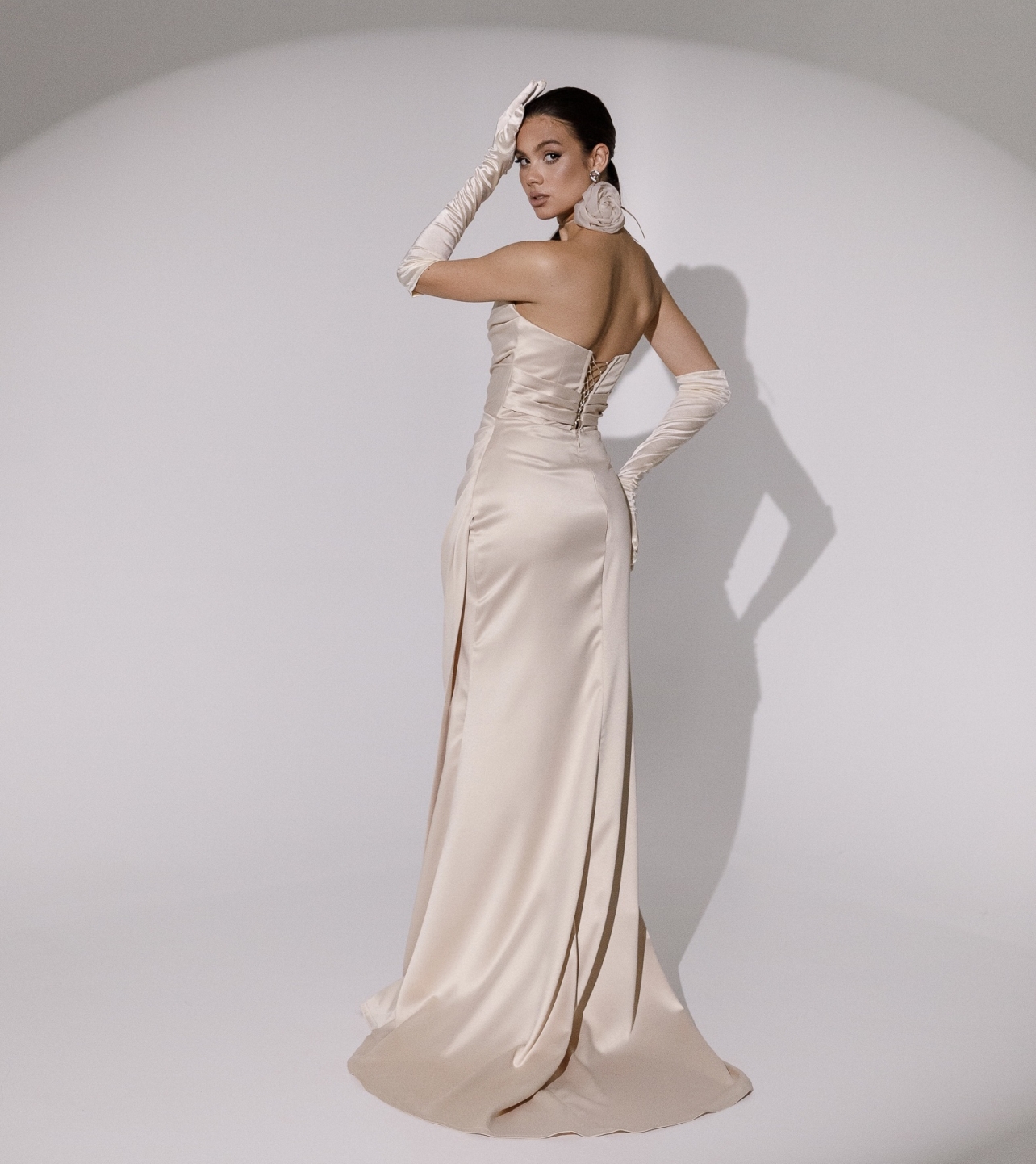 Вечернее платье в длине макси. Атласное длинное корсетное платье с элегантным разрезом по ноге, утонченная драпировка. Корсет придает изящность фигуре девушки, силуэт «рыбка» создают интригующий элегантный образ. Размеры от 48 отшиваем по индивидуальным меркам, что обеспечивает идеальную посадку по фигуре.